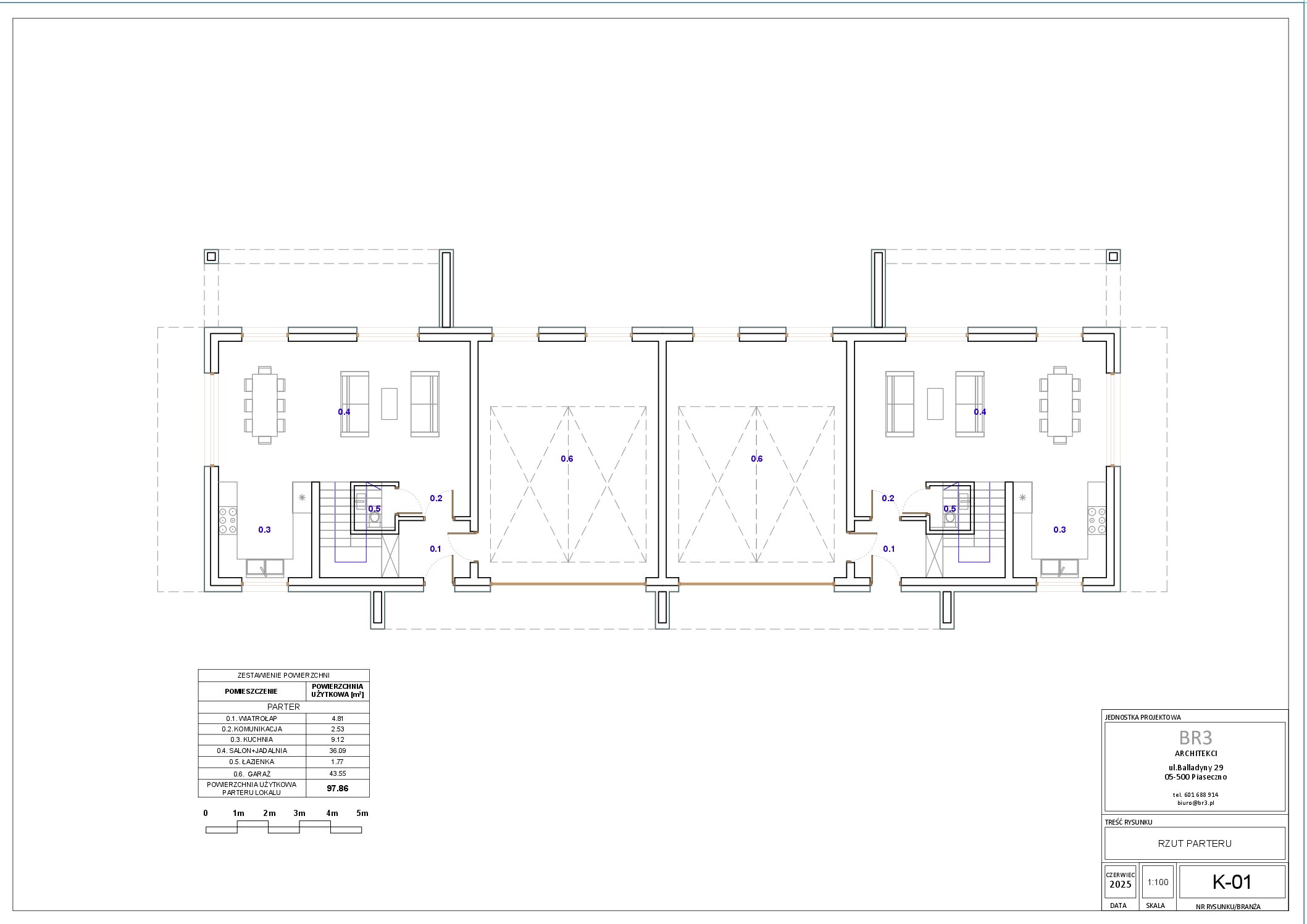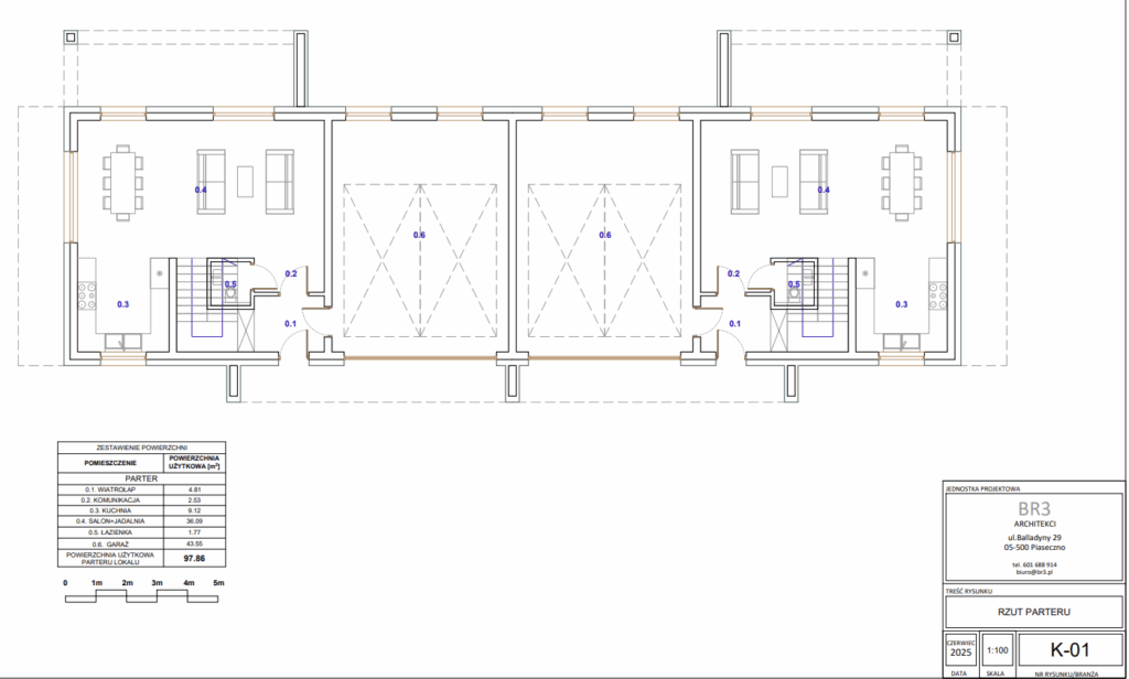 Dom jednorodzinny w zabudowie dwulokalowej (powierzchnia łączna działki pod dwa domy – 1200 m2).